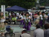 大間々の朝市で踊らせていただきました。 朝早くから沢山のお客様で賑わう中、みんな笑顔で踊りました。 |